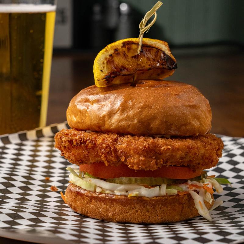 Fried cod, lettuce, tomato, lemon-dill mayo.
