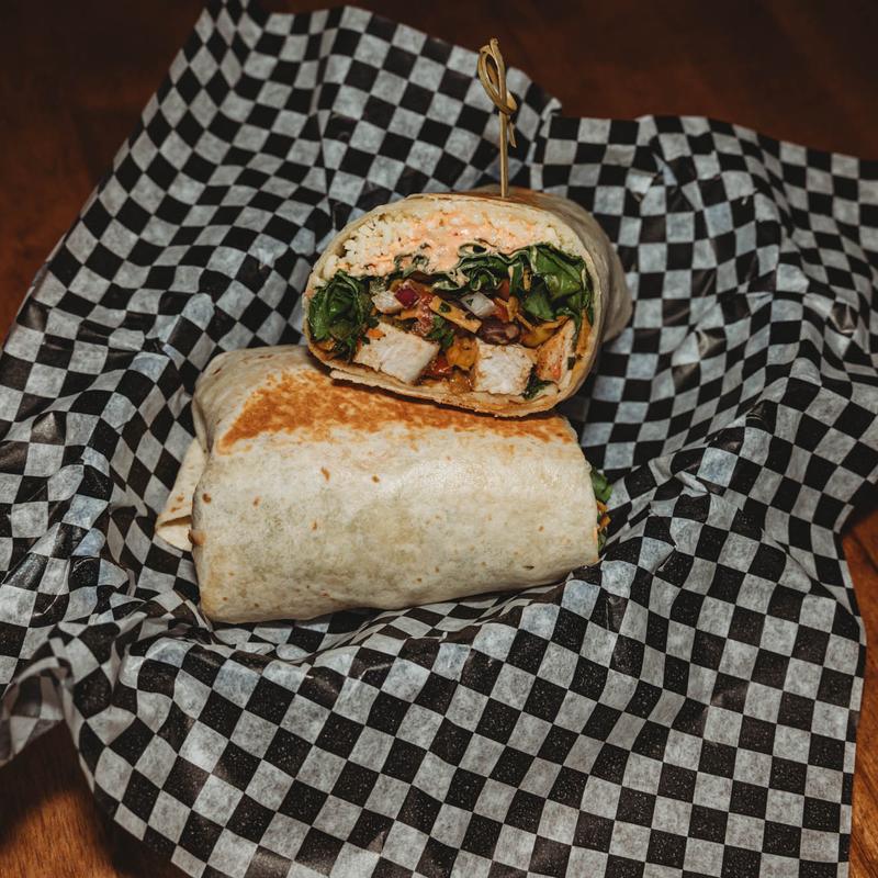 Chicken (Grilled or Fried) black beans, corn, pico, jalapeno American cheese, lettuce, tortilla strips, southwest sauce.
