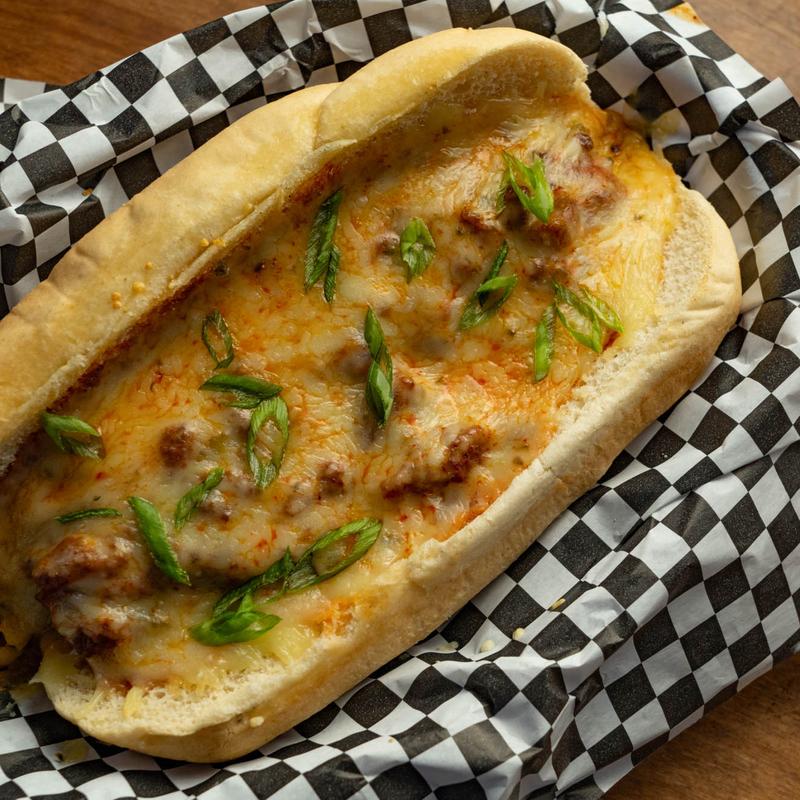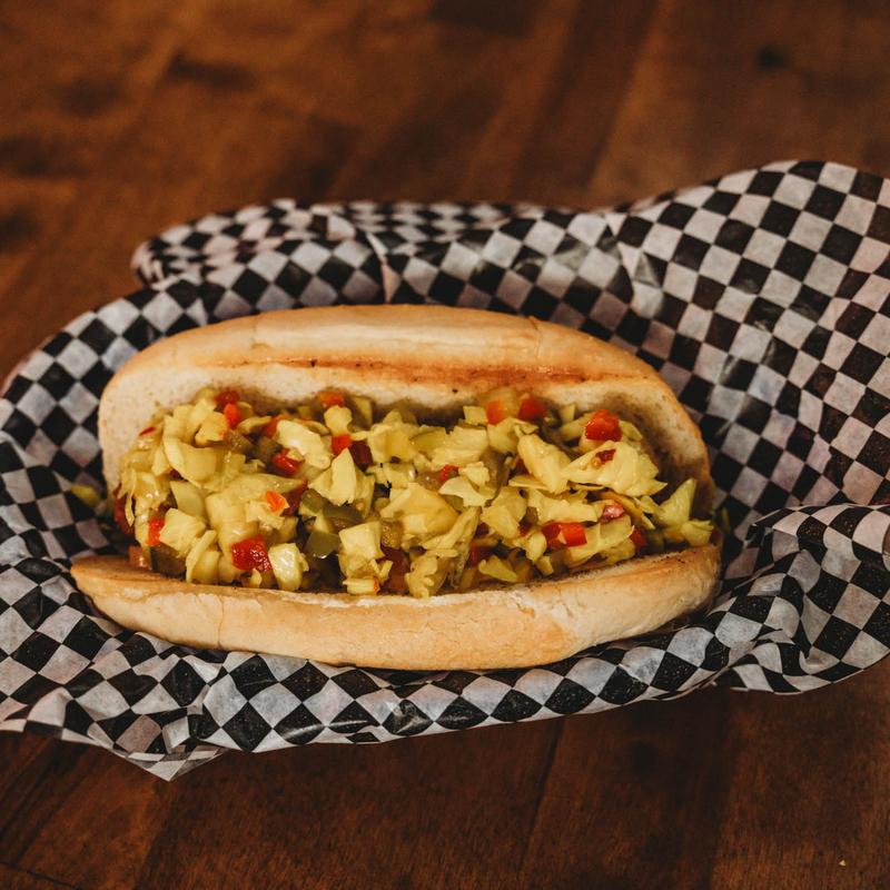 All beef hot dog, chili, jalapeno American cheese, green onion.